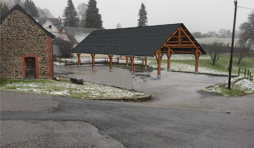 Dans ce cadre, la municipalité souhaite saisir cette opportunité pour installer une ombrière sur le parking du bourg. Elle permettrait d’accueillir des évènements de toutes sortes (repas, fêtes, animations, spectacles…) et servirait en outre de support à une unité de production photovoltaïque destinée à l’autoconsommation des bâtiments publics.
