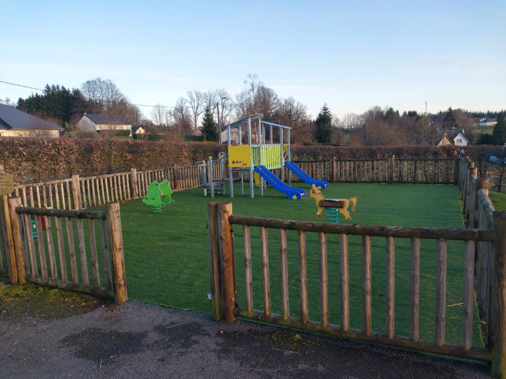 Une aire de jeux pour les plus petits et un city-stade pour les plus grands se trouvent à proximité de la salle polyvalente.