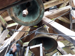 Le beffroi est un ouvrage de charpente destiné à supporter et à permettre de faire mouvoir les cloches. Une des poutres recevant l’ensemble était totalement détériorée et l’assemblage avait pris du jeu. Le balancement des cloches ne pouvait donc plus être supporté. C’est une entreprise corrézienne (établissements Drouillet et Fils, artisans techniciens campanaires) qui a réalisé les travaux. Suite à la dépose de la poutre endommagée et à son remplacement, le beffroi a pu être consolidé et le mécanisme des cloches révisé et réglé. Le boitier de contrôle a également été changé. Enfin, la réfection des « abat-sons» (lames de châtaigner aux ouvertures du clocher) va éviter à la pluie de pénétrer dans le clocher et causer de nouveaux dégâts. Les travaux se sont terminés le 15 octobre 2019. Le coût est de 11 604,00 € TTC soit 9 670,00 € HT.